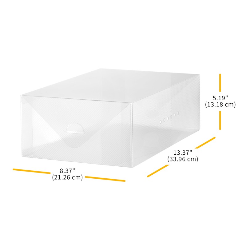 - Clear shoe storage container has vent holes to keep shoes fresh