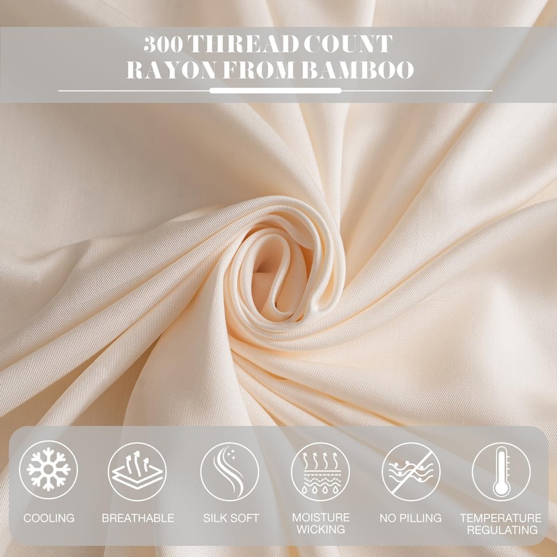 - Viscose from Bamboo Sheets - Made from 100% organic fibers with a 300-thread count, these luxury sheets offer a silky-soft feel that wraps you in comfort. More durable than traditional Egyptian cotton, they resist tearing and fraying, ensuring lasting softness.