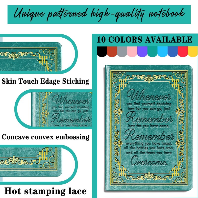 - “Whenever you find yourself doubting how far you can go, just Remember how far you have come.Remember everything you have faced,all the battles you have won, and all the fears you have overcome.”This notebook is clearly engraved with inspirational quotes and will be a special gift for your special someone.