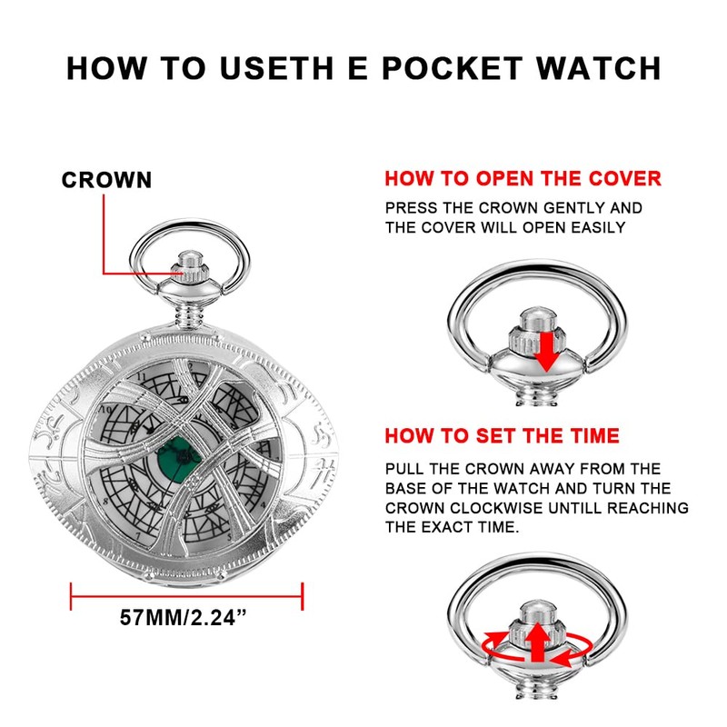 - Silver pocket watch: Using the recently popular "Doctor Strange" element pocket watch with a novel silver color, it is very suitable as a fashion accessory with various clothes.