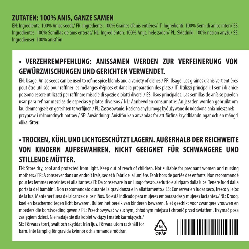 - 💚 VALUABLE IN EVERYDAY LIFE: The properties of anise and its possible uses are becoming increasingly popular. Originally from the Mediterranean, these have been used for centuries in Europe, but also in Asia. Among other things, they are suitable for refining sweets, pastries and various spice blends.
