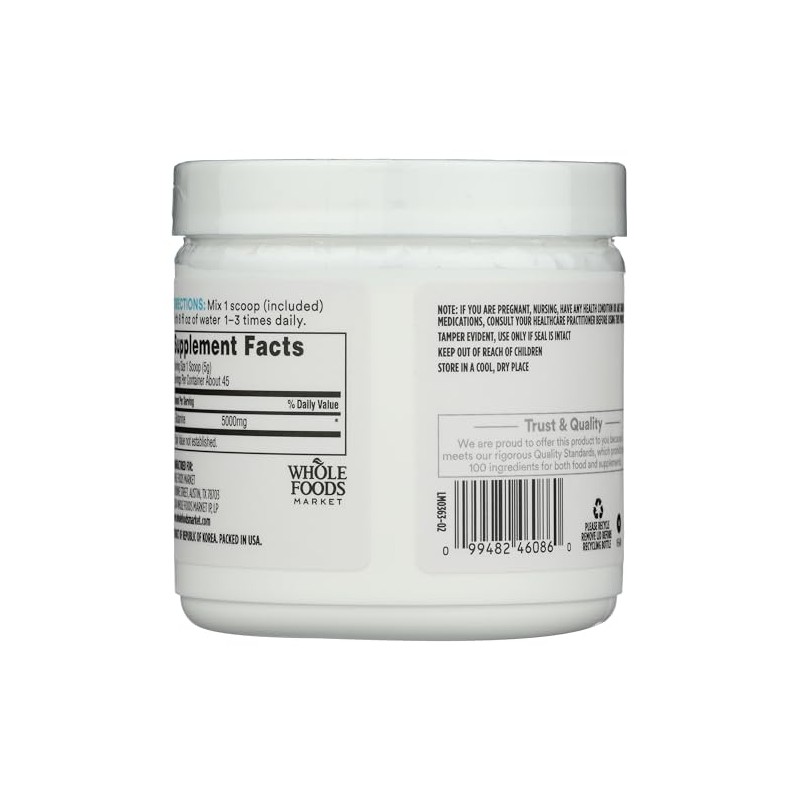 Whole Foods Market, Polvo de forma libre de L-glutamina, 8 onzas