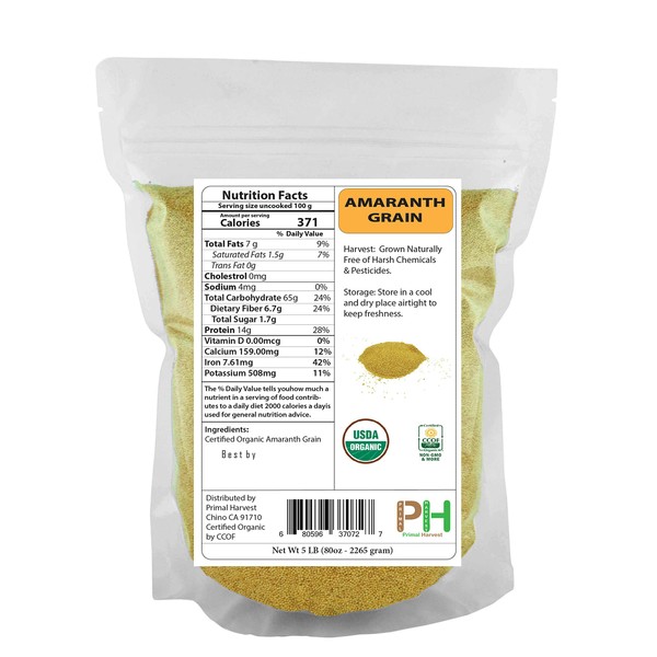 • VEGAN CHOICE - Heirloom Amaranth is a 100% Preservative free, vegan vegetarian, Certified Organic. Sourced from fair trade practiced growers & non-GMO. Egg free Fish free. No Wheat or artificial colors or flavors, milk lactose or gluten free, no sweetener or sugar soy or corn