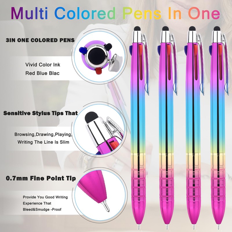 Whole life 3 in 1 Stylus Pen With Stylus Cell Phone Multi Color Ballpoint Pens Smudge Proof Pens Smooth Writing Extra Fine Point Pen Multi Ink Pens 0.7mm Tri Colors Ink Red Blue Black