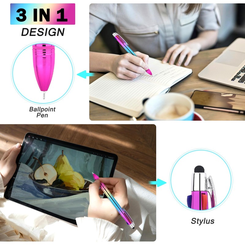- 【3 Colors In 1 Pen】Stylus Pens For Cell Phone With Multi Color Ballpoint Pens Contain Red Blue Black Inks In One Spring Press Design Helps You Easily Switch Colors At Any Time According To Your Writing Needs To Improve Efficiently, Various , Colors Are Good For Highlighting Or Color-Coding Key Points In Text Or Doing Notes Features a 0.7mm Ballpoint Pen With 3 ink Colors (Blue, Black, Red) Plus A Responsive Touchscreen Stylus Tip For Versatile Use On All Devices