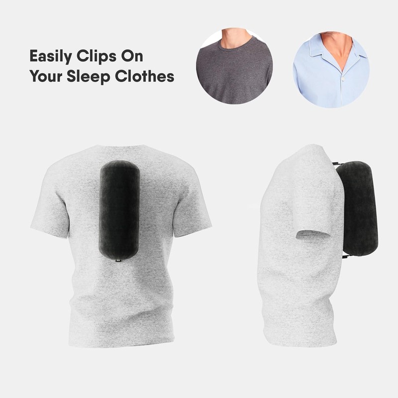 To stay in the side sleep position, just clip it on the upper back of your shirt. Snug fit preferred