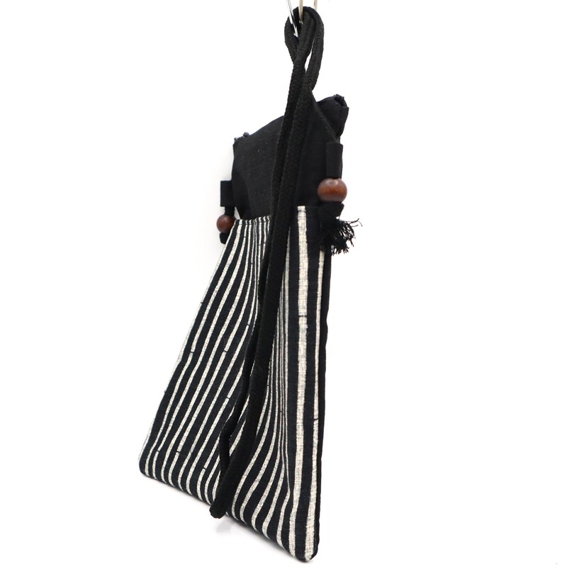 Whole Round Shoulder Bag Pochette Bamboo Made in Japan Black Approx. 7.7 x 9.8 x 0.3 inches (19.5 x 25 x 0.8 cm)