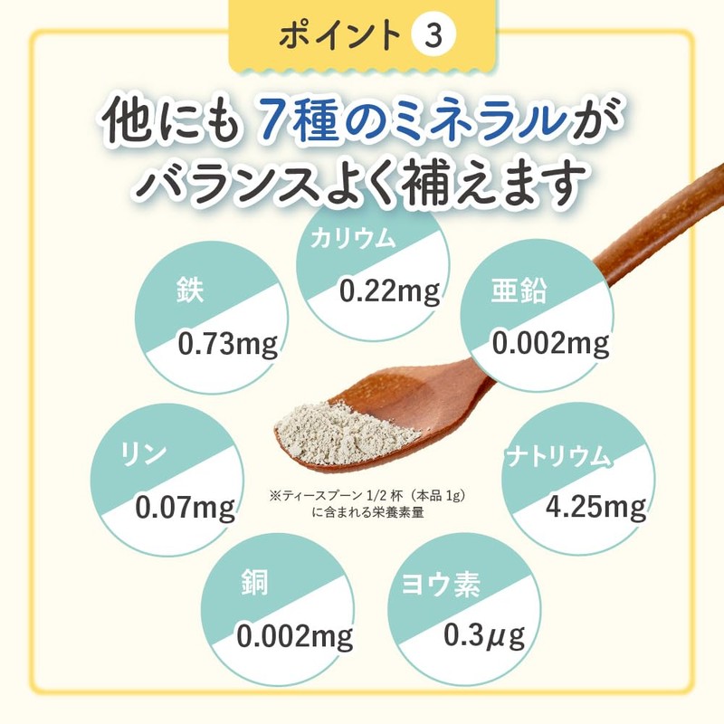 - Calcium & 7 Types of Mineral Supplement: This product is 0.04 oz (1 g) to balance the lack of calcium, 7 minerals (sodium, iron, potassium, iodine, phosphorus, zinc, copper)