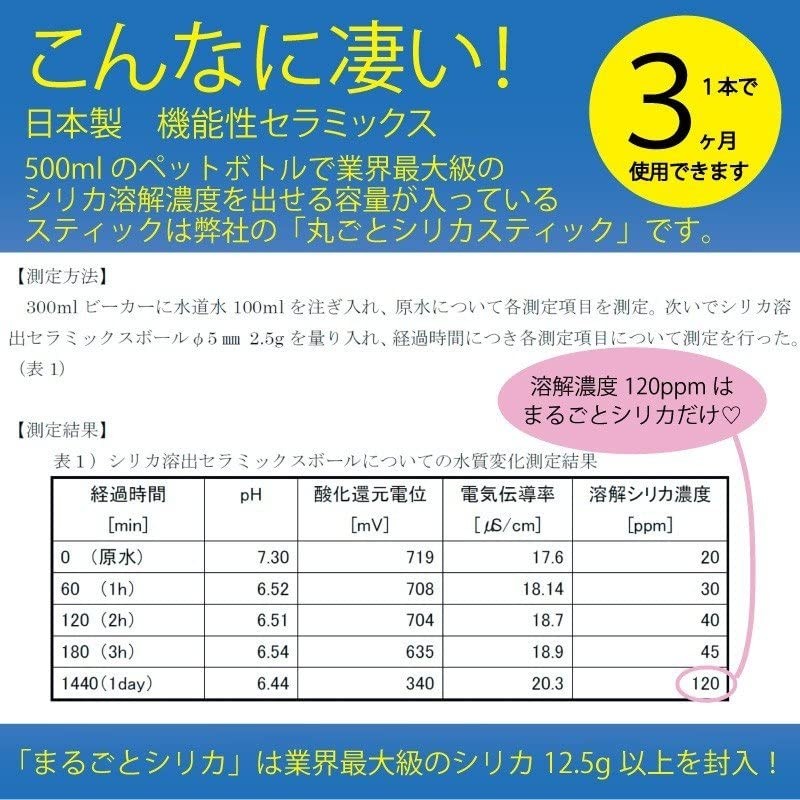 Whole Silica Sticks (Pack of 2), Just Put Your Own Silica Water Sticks into Water, Dissolved Silica Concentration of up to 120 ppm, Good Costs of 13 yen per Time, 16.9 fl oz (500 ml) of Water Can Be Used 90 Times Per Stick (Approx. 3 Months Worth) Silico