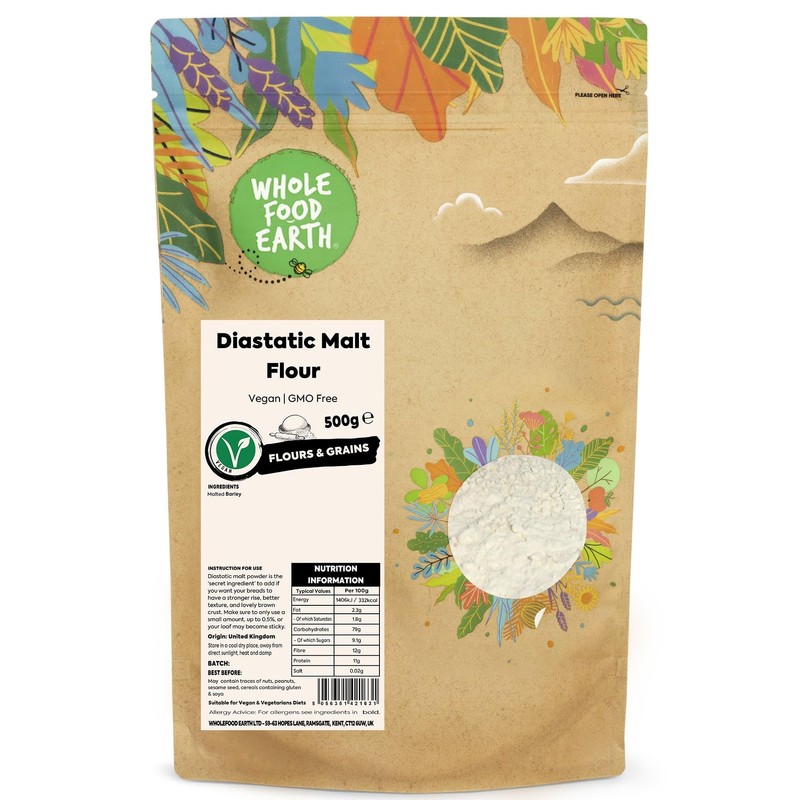 Wholefood Earth Diastatic Malt Flour - 500g | GMO Free