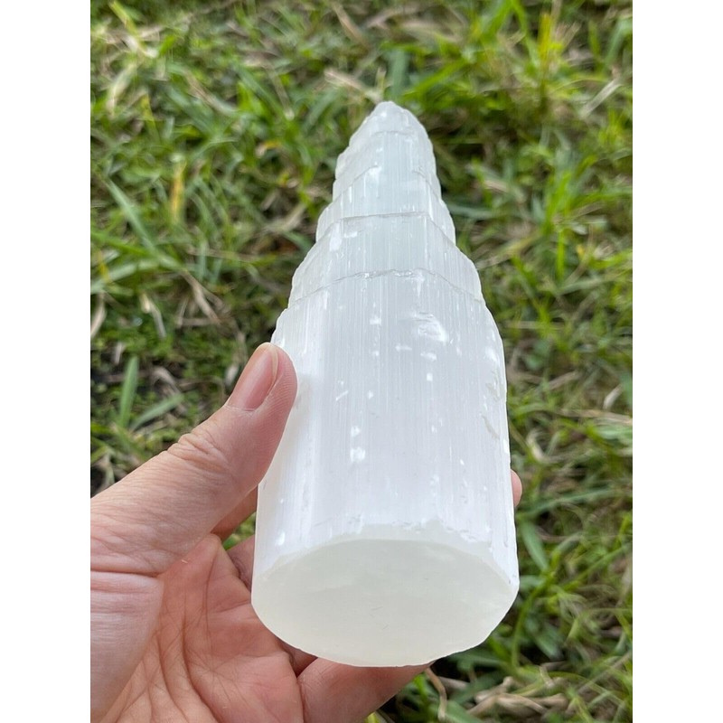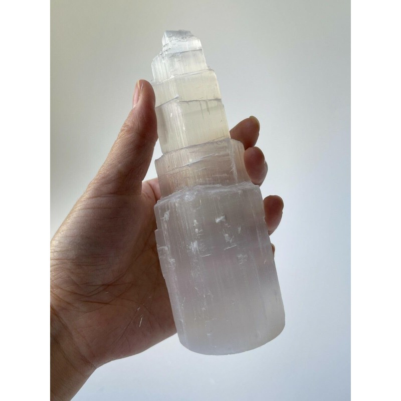 - Place it in your home or office to clear negative energy and create a tranquil environment. Whether used as a decorative centerpiece or a tool for meditation, this Selenite Skyscraper will add a touch of elegance and serenity to your space.