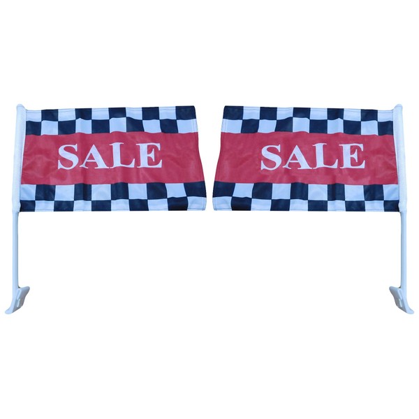 Wholesale Lot of 12 Sale Red Advertising Flag With Black & White Checkered 12x18 12"x18" Rough Tex Knit Nylon 100D Double Sided Car Vehicle Flag
