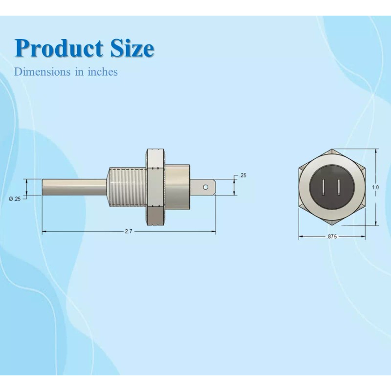 - Made of stainless steel, rust free material, easy to install and durable to use. Operating temperature from -20°C to 80°C. Overall Length: 2.7 inches