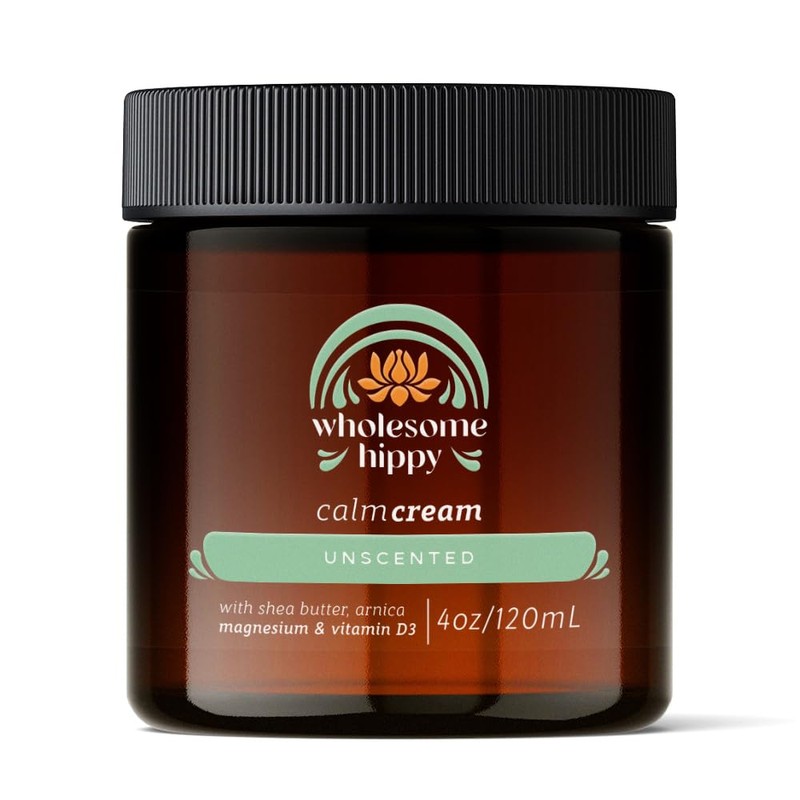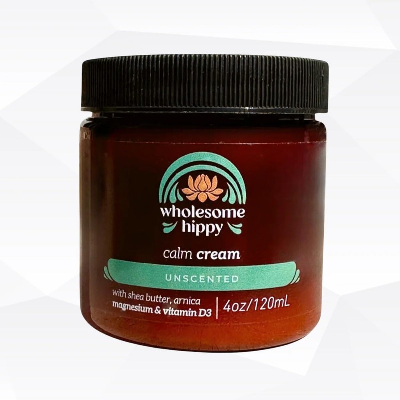 Wholesome Hippy Calm Cream – All Natural Body Butter with Magnesium, Vitamin D3, Shea, Arnica & Turmeric – Vegan Moisturizer for Sensitive Skin & Self-Care – 4oz