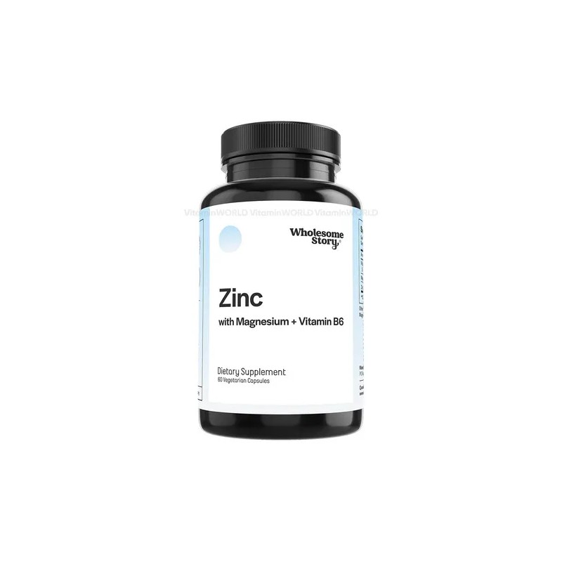 Wholesome Story Zinc con Vitamina B6 y Magnesio 60 Capsulas Veganas, refuerza la salud reproductiva, los perfiles metabólicos, el equilibrio hormonal y los síntomas del síndrome premenstrual.