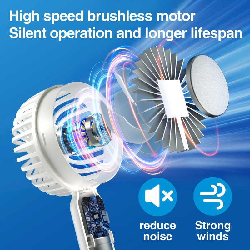 • Upgrade Battery & PortableOur upgraded battery has a capacity of 3000 mAh, providing you with long-lasting durability and strength.This fan is small and lightweight, making it easy to carry around in your bag, jeans pocket, or other suitable places. It is also less noisy compared to other fans, making it perfect for use in the office, at home, or in public spaces. Don't let the heat of summer get the best of you, experience the comfort of air conditioner fan Now!