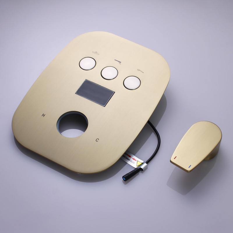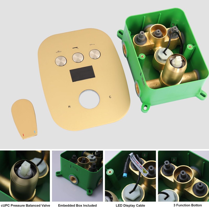 WHSHOWER 3 Way Shower Diverter Valve Push-Button Temperature Display Modern Bathroom Concealed Faucet Valve Rough-In Mixing Shower Valve Kit Replacement Can Work At The Same Time, Brushed Gold