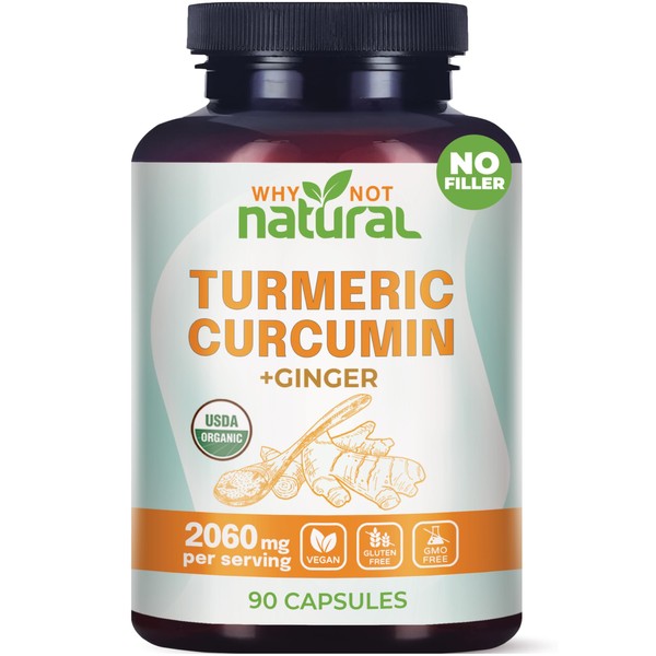 Organic Turmeric Curcumin Supplement in Capsules with Ginger and Black Pepper...