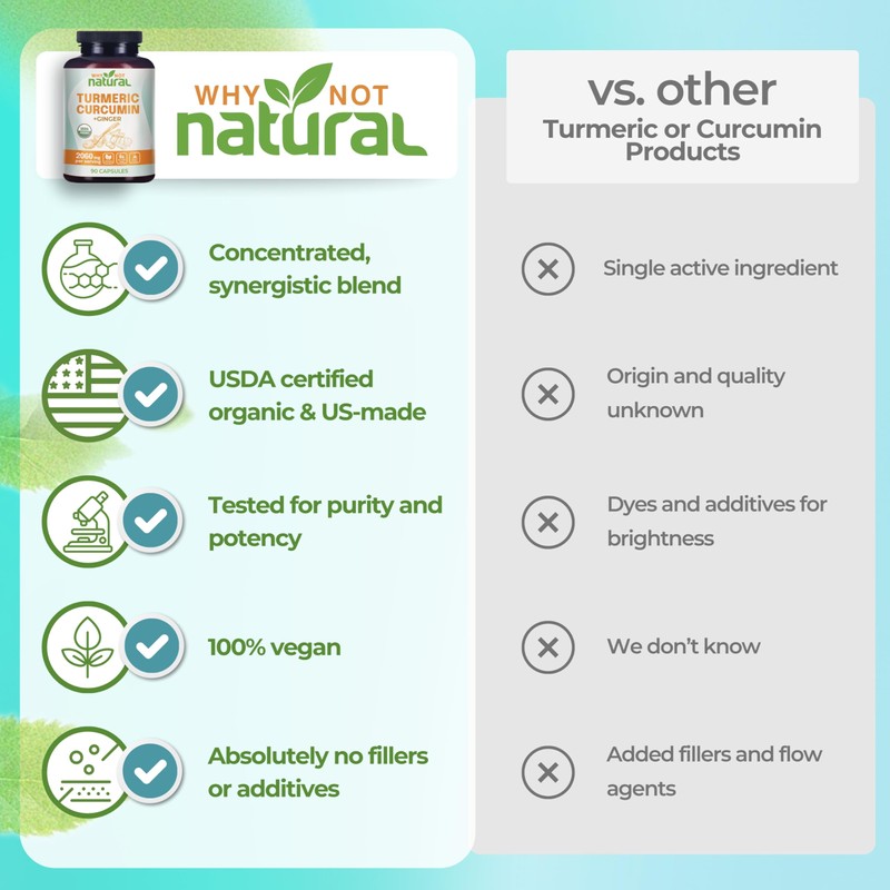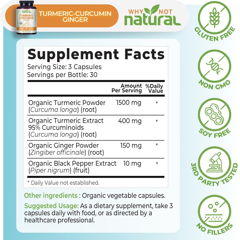 • Boosted Absorption: We amplify the benefits of turmeric by including a 95% curcuminoid extract of its most powerful compound, curcumin, and adding black pepper extract (piperine) which enhances absorption by up to 2000%.