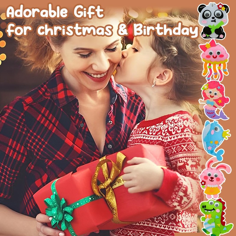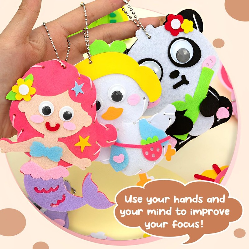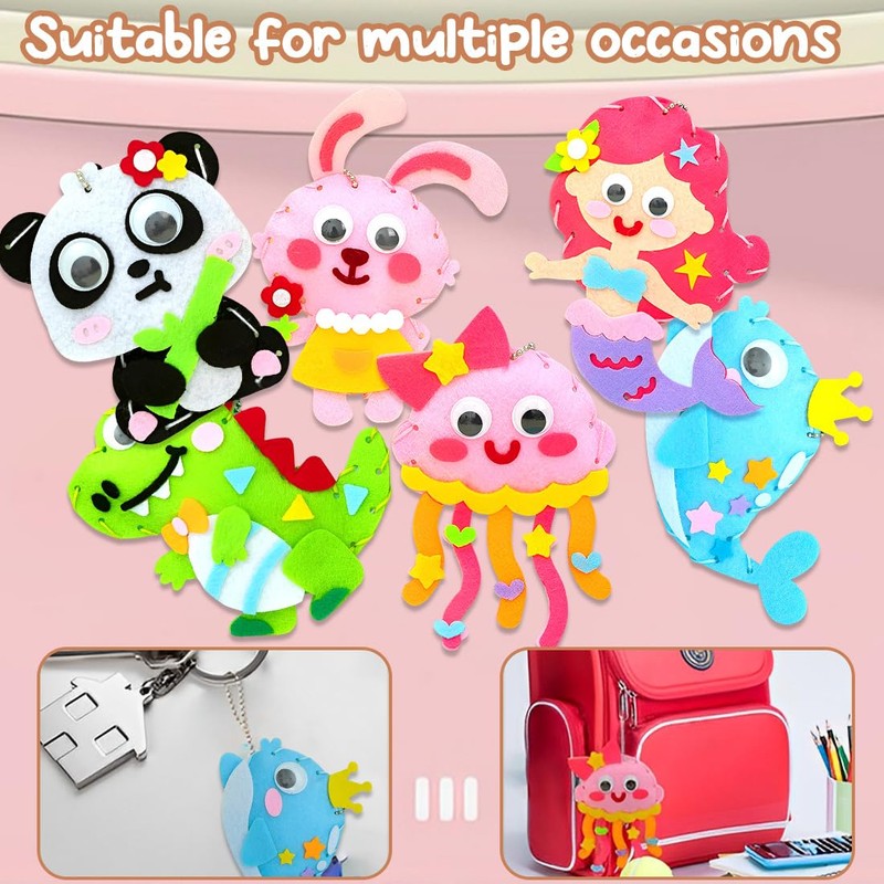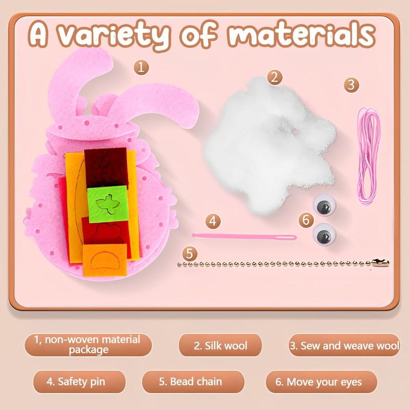 - 4,🎁【IDEAL GIFT FOR LITTLE CRAFTSMANS】: Whether as a birthday gift or as a creative activity at home, this DIY sewing kit is a hit with children. The finished felt toys can be used as a keychain or decoration, making them a personal and practical gift.