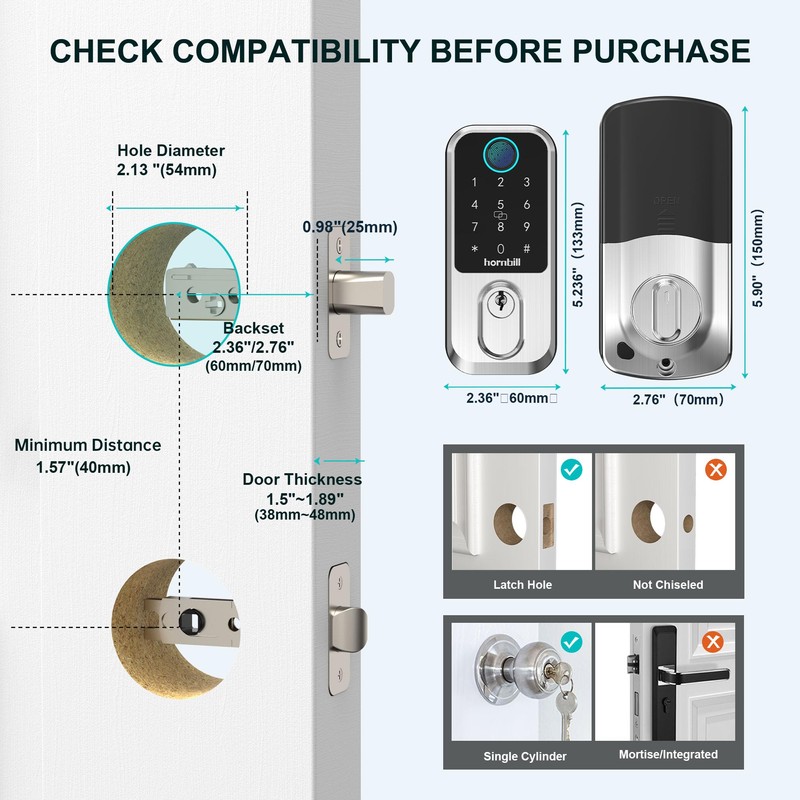 - 【WiFi Remote Unlock/Lock】Remotely unlock Hornbill’s fingerprint door lock—perfect for vacations or when away. Keep the gateway within 16ft (10ft if walls block) of the lock and router for seamless 2.4GHz WiFi. Stay connected and in control from anywhere.