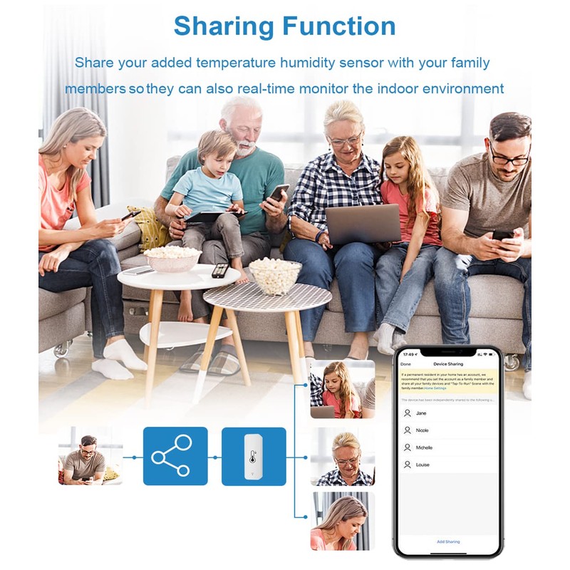 - Home smart linkage: you can create a home smart shortcut with the temperature humidity monitor to automatically turn off your smart devices. For example, you can set an intelligent scene by connecting your air conditioner and humidifier to the thermometer of the humidity display. Your air conditioner your humidifier is automatically switched on when the temperature or humidity data is about the critical value you have set for