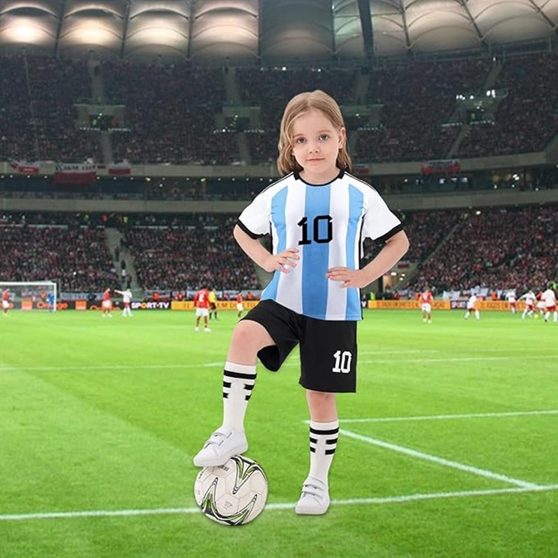 - 【Widely Used】This soccer jersey is a gift that all soccer loving fans will love. This kids soccer jersey is suitable for daily wear, soccer games, all kinds of ball sports, outdoor running, training, casual wear, breathable training wear, fan collection.
