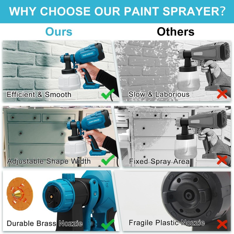 - 【Easy to Use & Clean】This paint sprayer can be assembled effortlessly without the need for any tools. Even if you're a beginner, you can start using it with ease after reading the manual. It comes with a cleaning brush and a needle to remove any hardened paint left in the nozzle, making it convenient and efficient for you to clean.