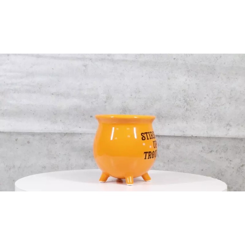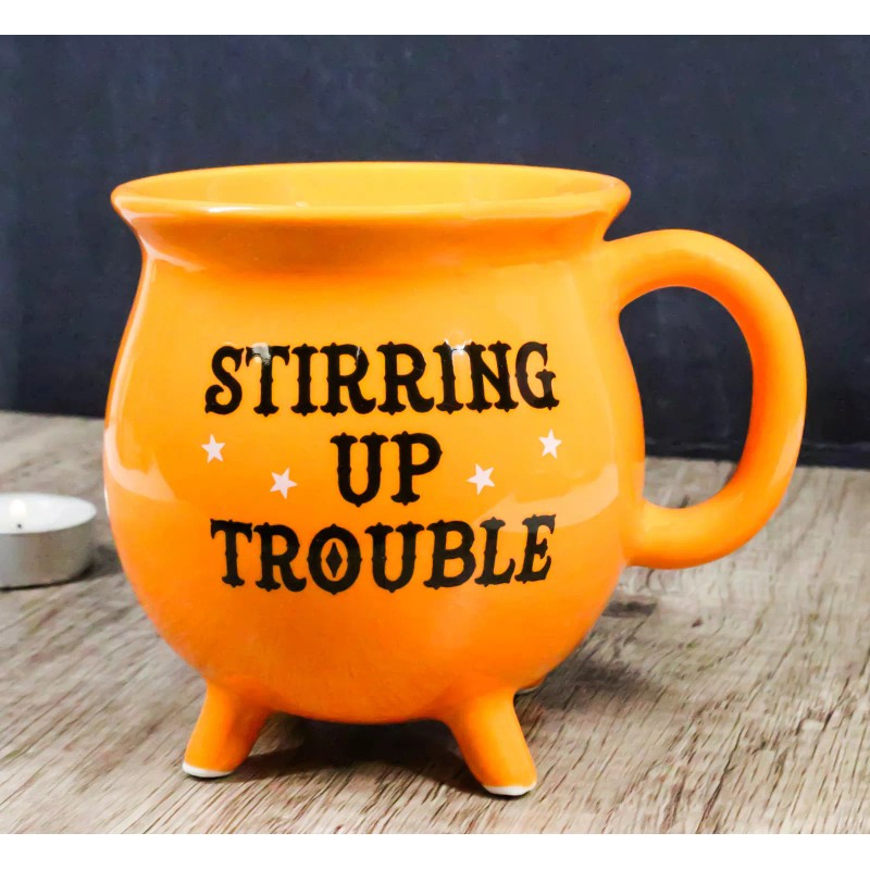 Wicca Magic Orange Stirring Up Trouble Cauldron Ceramic Mug With Handle 16oz