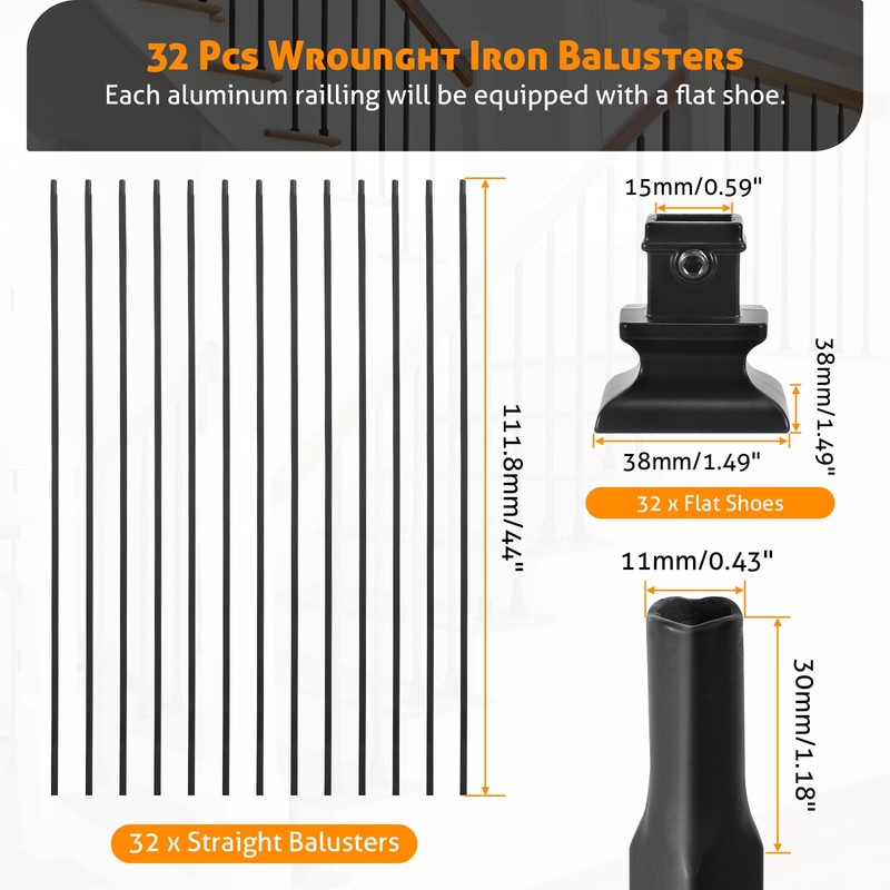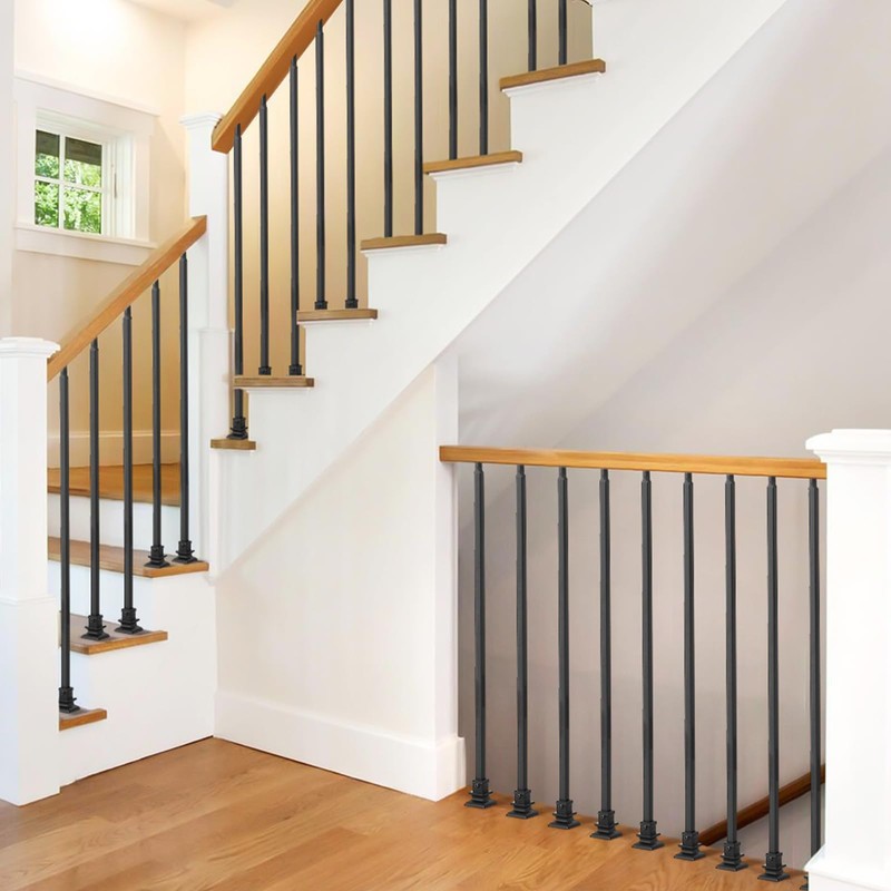 - DURABLE MATERIAL: Stair Balusters Indoor are made of 100% wrought iron. Coated with long lasting satin powder coating, high temperature baking paint, scratch resistance, strong weather resistance.High hardness wrought iron balusters make them provide strong support and stability for stairs.