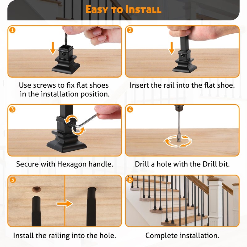 - EASY TO MAINTAIN: WICHEMI iron balusters for staircase interior is finished in black satin for simplicity, modernity and elegance. It makes the surface feel more comfortable, but also achieve good anti-rust anti-corrosion effect. These Stair Balusters Metal are easy to install and require low maintenance.