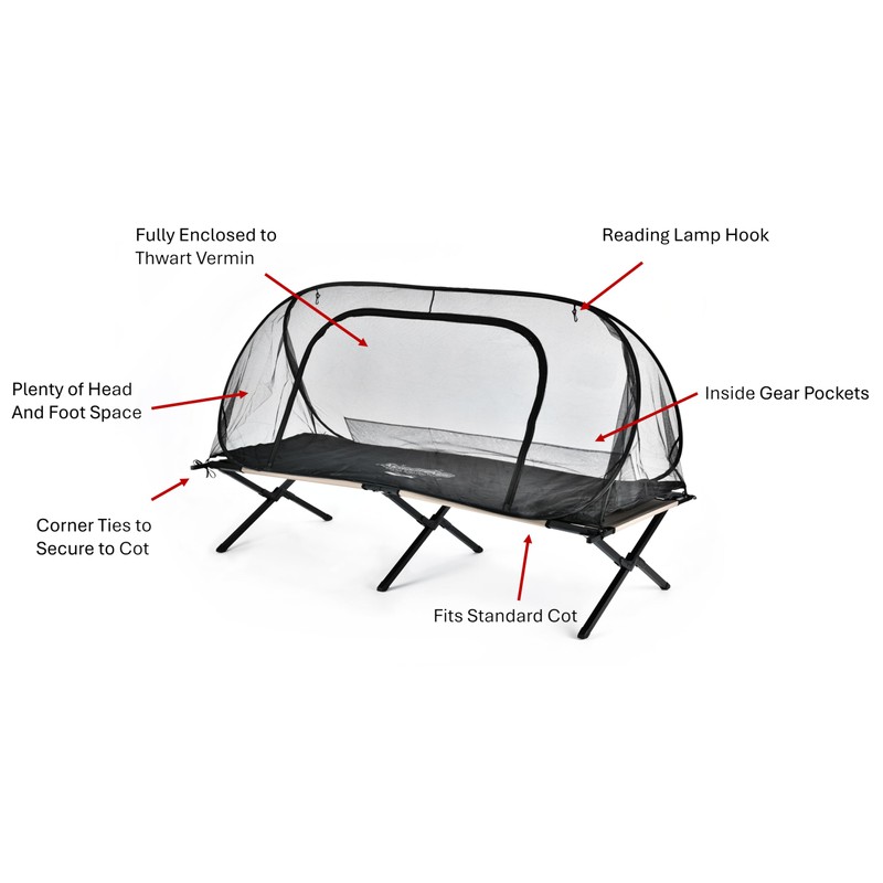 - 100% enclosed so you're safe from biting bugs and assorted unsavory vermin