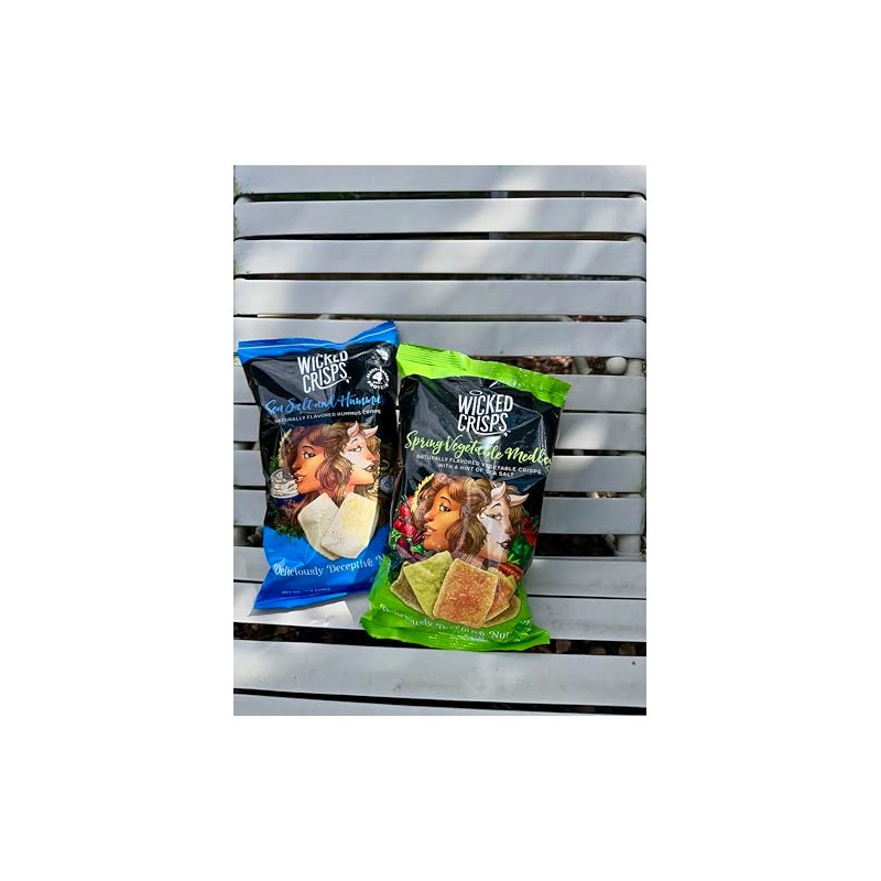 Wicked Crisps, Simple Vegan Vibes Variety Pack, 2 Bags Each of Sea Salt and Hummus Naturally Flavored Hummus Crisps 4g Protein and Spring Vegetable Medley Naturally Flavored Vegetable Crisps with a Hint of Sea Salt, Baked Veggie Chips, Deliciously Decept