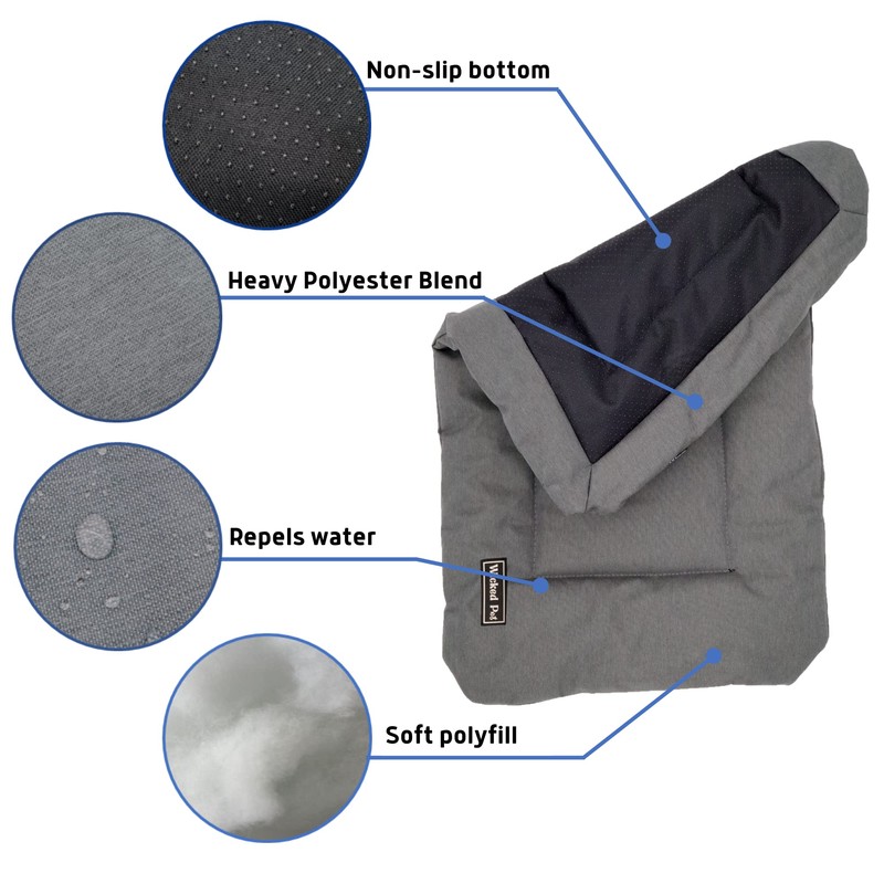 - Premium Fabric: The outer shell is made of a durable, heavy-duty polyester blend that is resistant to tears and rips containing a 1-inch polyester fill creating a cushioned surface for your pet. The outer fabric is water repellent, with an anti-slip bottom making it a great choice for outdoor activities.