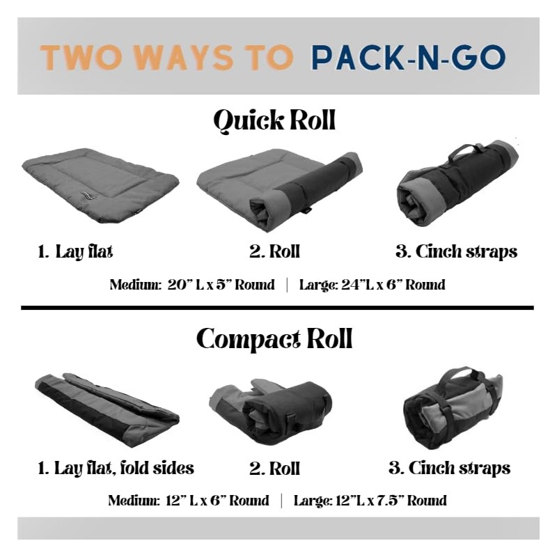 - Design: This mat is lightweight. The roll-up design with attached cinch straps and handles provides for easy storage and transportation, making this dog mat versatile.