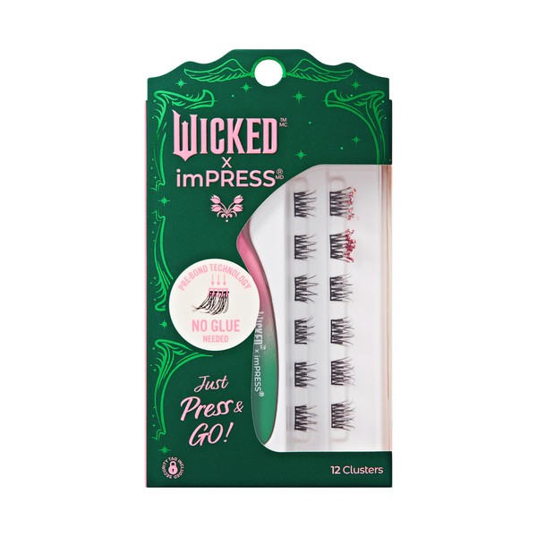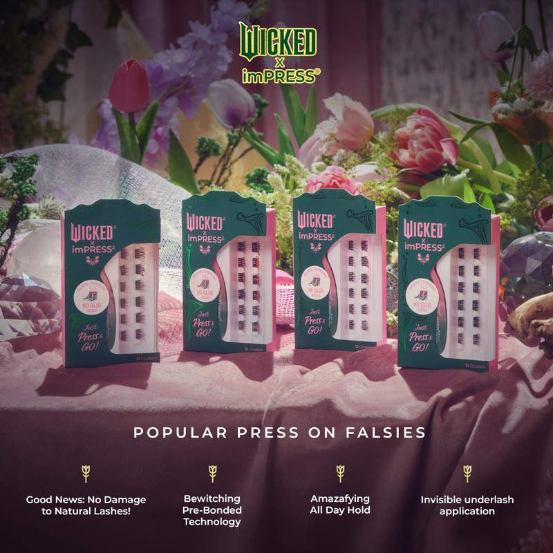 - Bewitching: Don’t hide your magic with these press on false eyelashes from WICKED X imPRESS; spellbinding lashes go under your natural lashes, but defy gravity with no glue; 4 glamorous styles in all