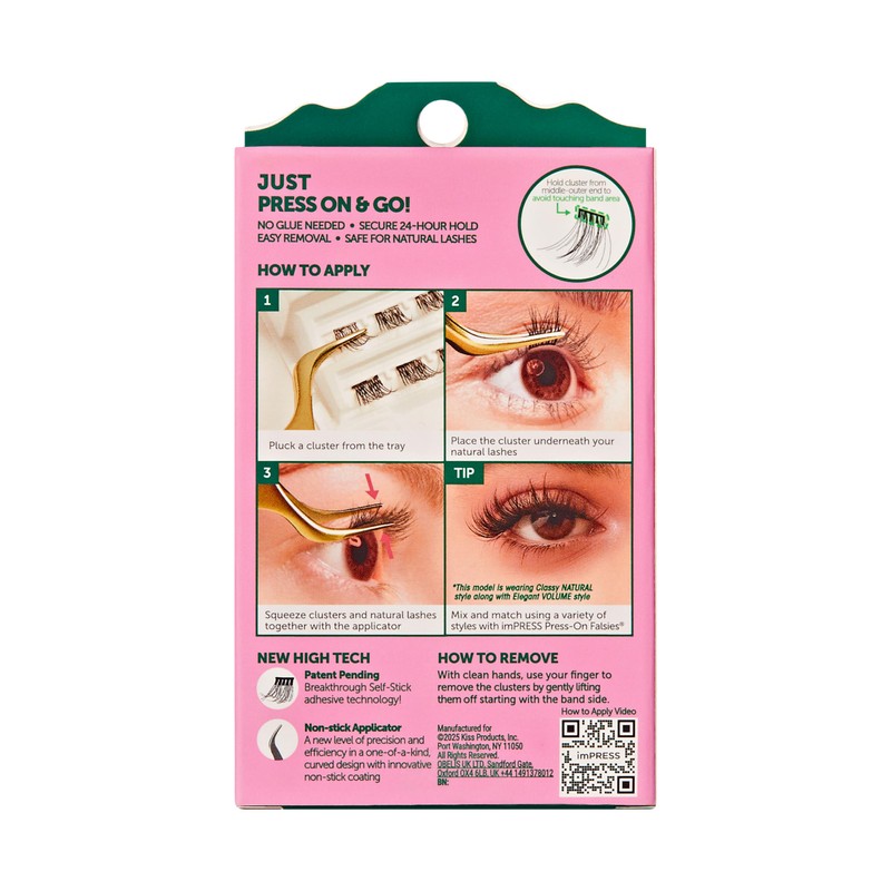 - Breakthrough Technology: imPRESS Falsies press on lashes with Pre-Bonded Technology require no glue to apply, and are a true game changer; press on under lash application lets you lash in one easy step, with no mistakes and no mess