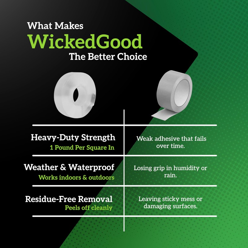 WickedGood Strong Double Sided Tape - Nano Clear Double Sided Mounting Tape with Heavy Duty, Waterproof Adhesive for Indoor, Outdoor Use, Multi Purpose for Wall, Picture Frames, Carpet (3/4" x 60")