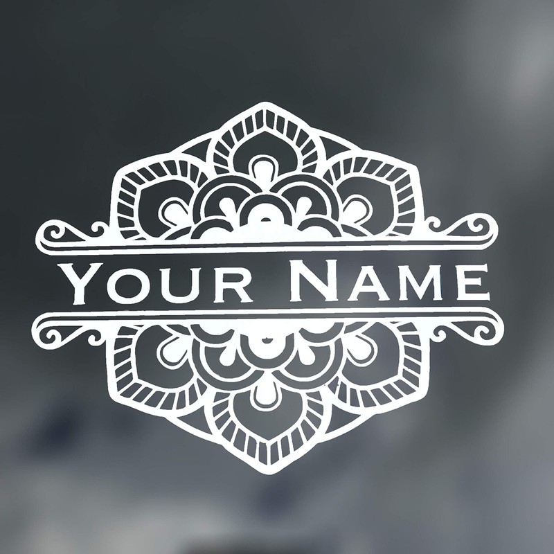 WickedGoodz Custom Mandela Flower Name Monogram Vinyl Decal - Initial Bumper Sticker, for Tumblers, Laptops, Car Windows- Name Sticker