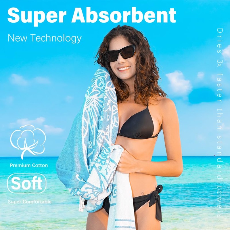 - LIGHTWEIGHT AND SAND FREE:The turkish beach towels make your holiday relaxing and enjoyable.This beach towel is light and breathable.And it is compact and easy to fold,which is very space saving.Pack it in a bag and go anytime.Besides,when you're done playing at the beach,just give it a shake,leave the sands where they belong to