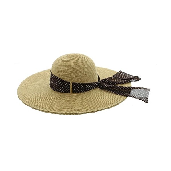 Wide Brim Sun Hat with Poka Dot Bow- Brown Bow