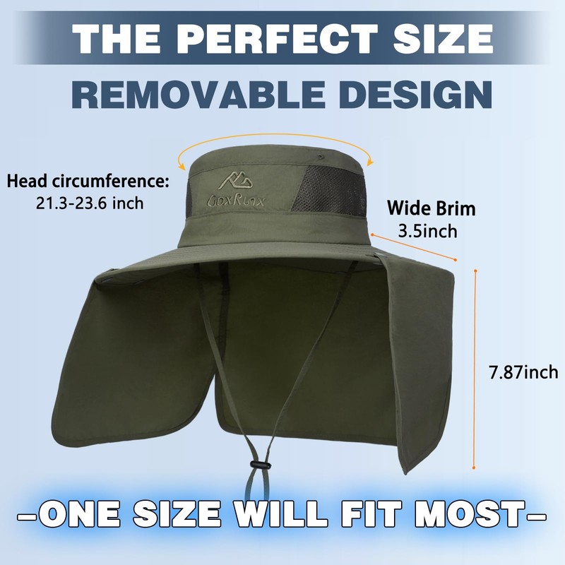 - 【Complete Sun Protection】: Our UPF 50+ suns hat features a wide brim and detachable neck flap providing 360 ° protection, it keep the sun off you head,face and neck. The large mesh design,makes the hat particularly breathable.