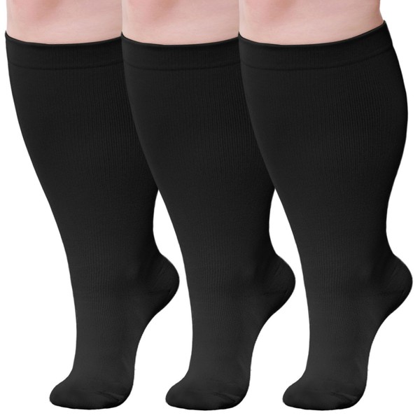 Wide Calf Compression Socks: Plus Size Compression Stockings for Men Women - Extra Large 20-30 mmHg Compression Hose Support for Travel Nurses Running Pregnancy 3 Pairs 4XL Black