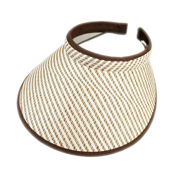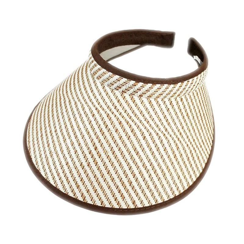 Wide Weave Design Paper Straw Push On Clip On Sun Visor Hat Sun Protection (Brown)