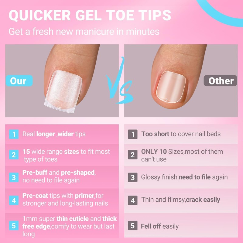 Wider Long Square Toe Nail Tips Full Cover with Glue, SINOKAME No File Matte Thick Toe Nail Press Ons Clear, Soak Off Fake Toenails Extensions DIY Home Manicure Kit for Women &Men,300 Pcs 15 Sizes