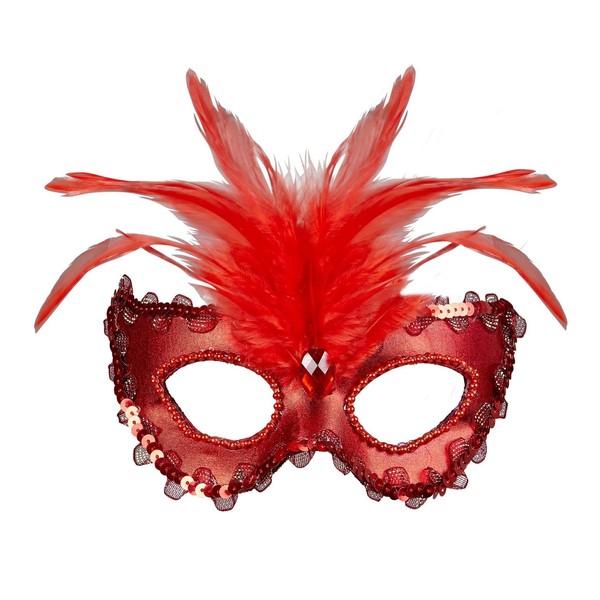 - The red feathers combined with the sequins make this mask and therefore also the wearer an eye-catcher at any party