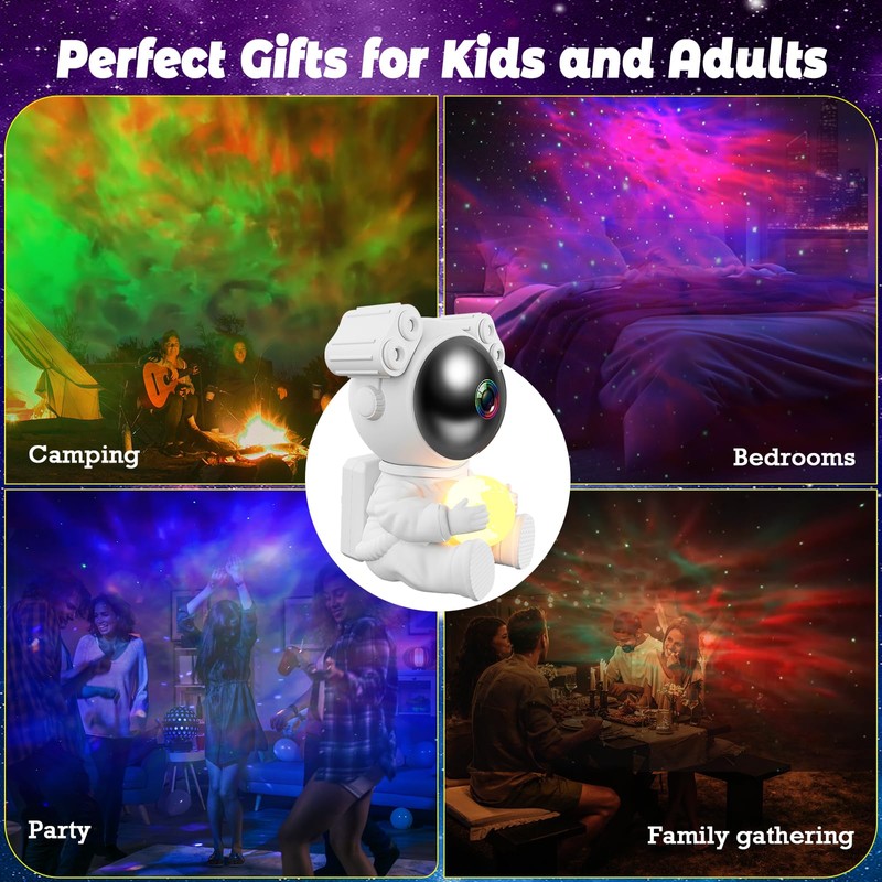 - Great gift for children and adults - If you are looking for a holiday gift for your family or friends, this astronaut projector is perfect for Christmas, Valentine's Day, birthdays, children's holidays and more. Whether you are a star or astronomy lover or looking for a gift for your loved one, this astronaut starry sky lamp is a good choice for you, because who doesn't want to relax under the stars and cover the Milky Way for sleeping?