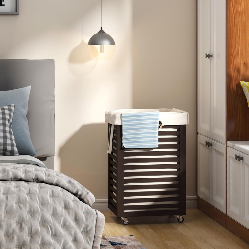 Wieghda Laundry Basket,Laundry Basket with Wheels,Rolling Laundry Basket for Clothes,Small Laundry Basket for Bedroom,Brown