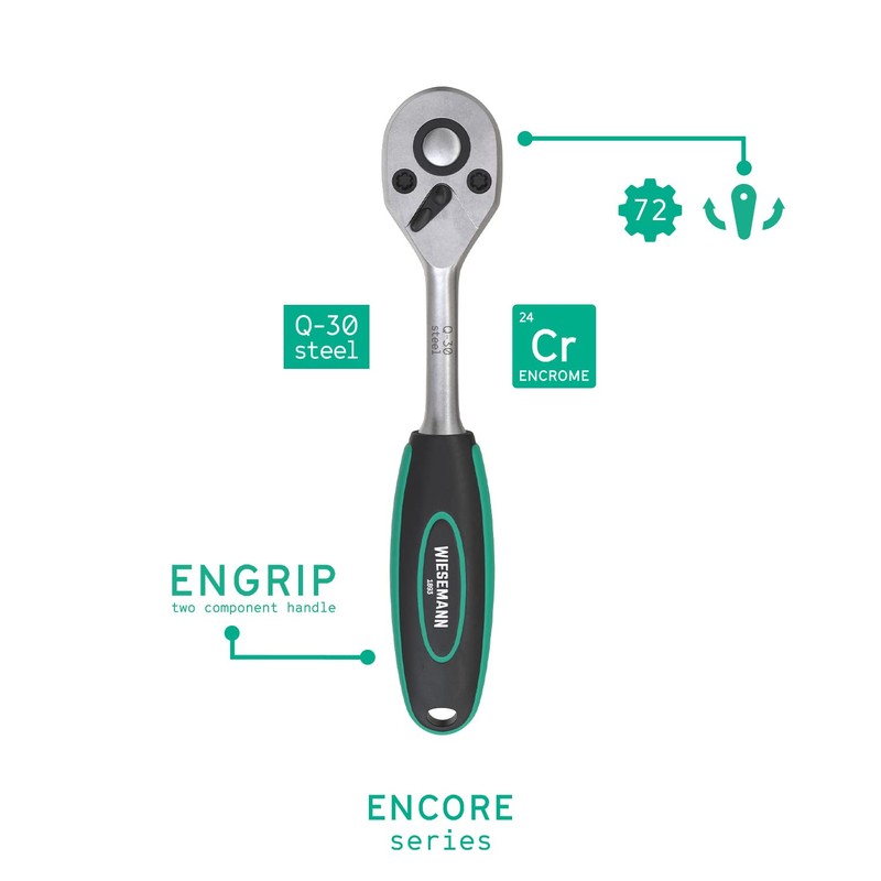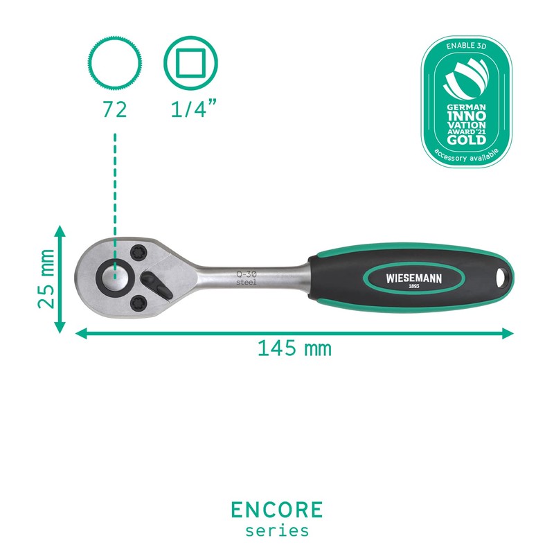 WIESEMANN 1893 Lever Reversible Ratchet 1/4 Inch with 72 Teeth I Fine-Toothed Ratchet Made of Chrome-Plated CV Steel with Two-Component Handle I 80812