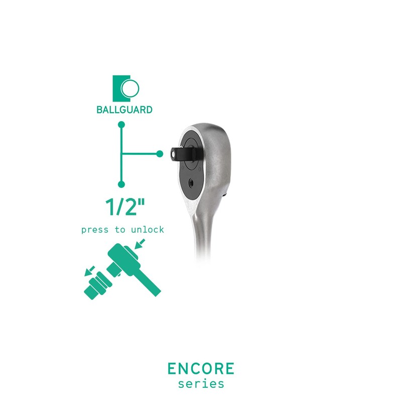 - Drive: 6.3 mm (1/4 inch) square drive with ball lock.
